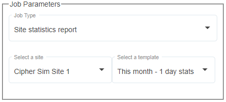 | The new Scheduler tool includes the option to generate a site statistics report. The job requires selecting the site and a reports template that defines the preferred quantities, statistics and time period.