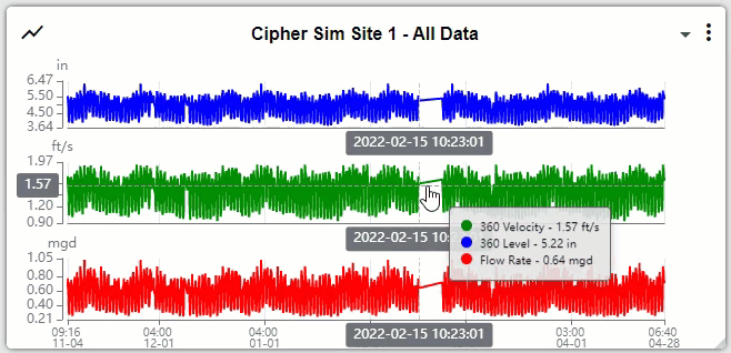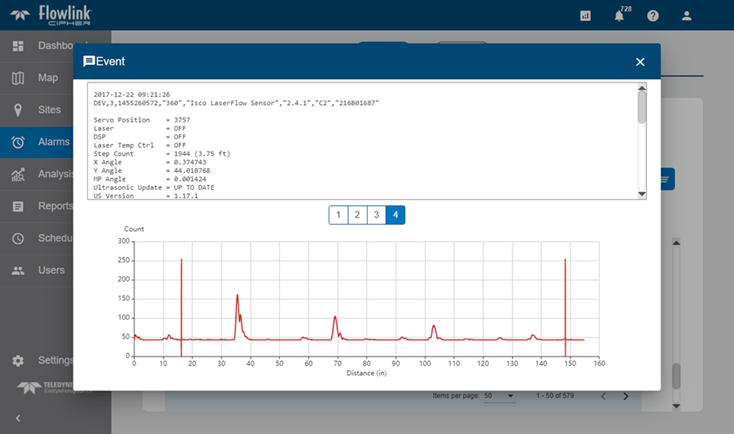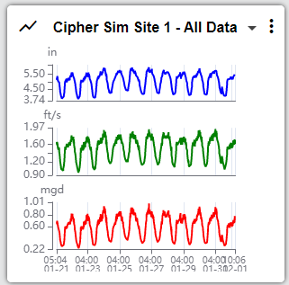 | Diagnostic events ingested into Cipher are now rendered in a new dialog box with both text and graphs displayed. The diagnostic events are available in the Alarms screen and the Events tab of the site information screen.