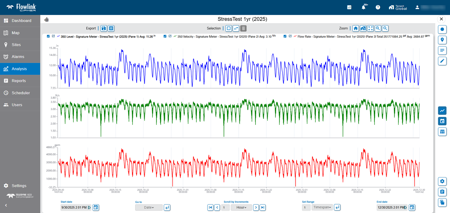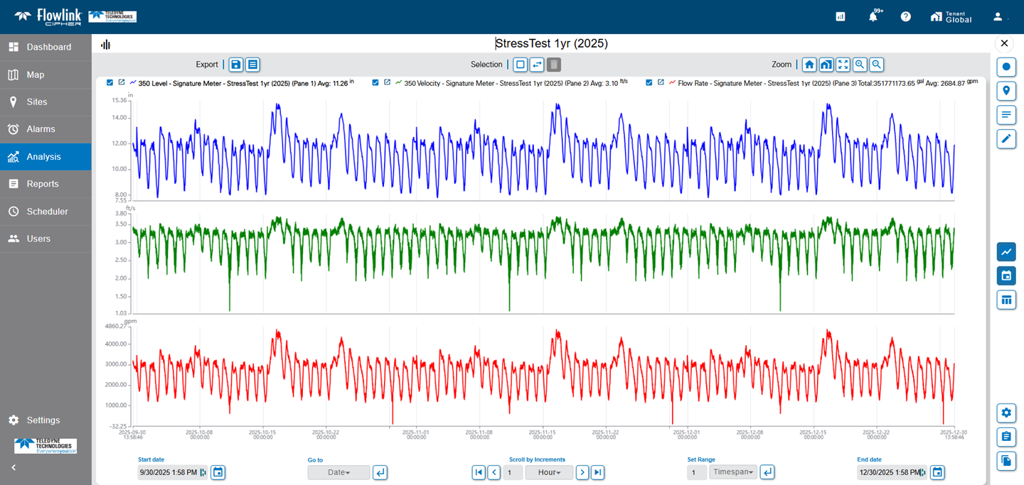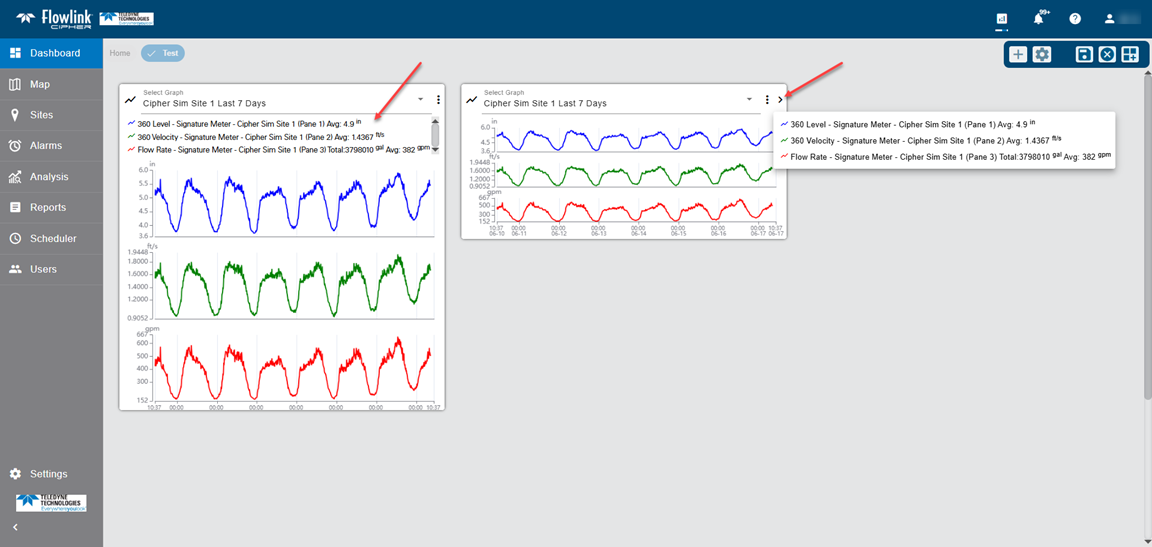| Graphs created with the 'Level, Velocity and Flow Rate from Site' function on the Sites screen (ie. quick graph) will now correctly use the 'Reduced Legend' user preference setting when adding the legend to the graph. |