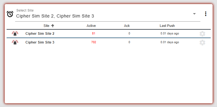 | The Alarms gadget will now continue to glow with the red color while there are Data events for the sites selected for the gadget that are Active or Acknowledged. The red glow will be removed automatically when the Data events for the sites selected for the gadget site are Resolved.
