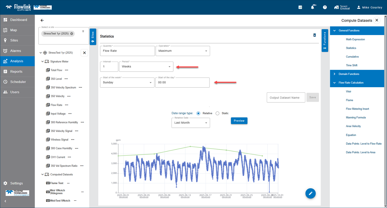 | The Statistics function has been updated to include the option 'Start of the day' when the Period value is set to Days. When the Period is set to Weeks, the options 'Start of the day' and 'Start of the week' are available.