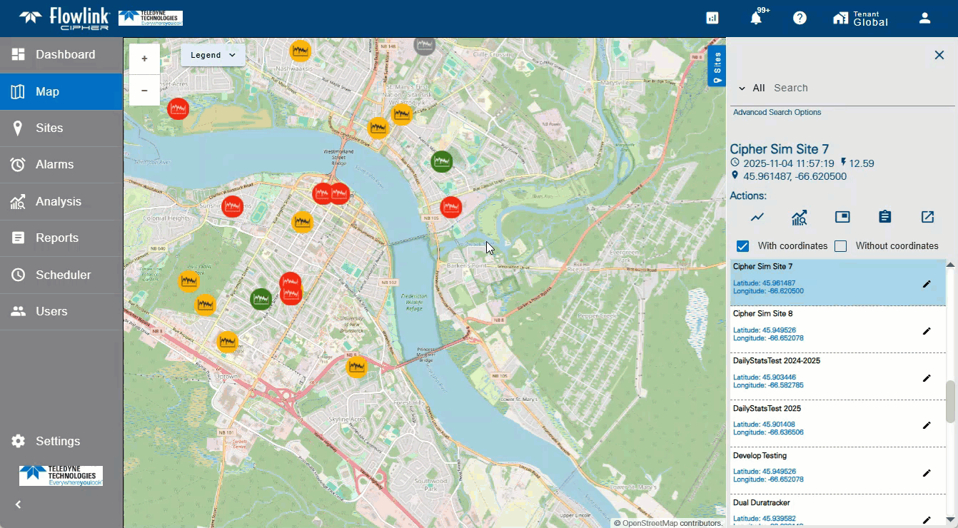 | The Site gadget is now available on the Map screen. Hover the cursor over the site symbol to display the information tooltip for the site, then click the 'Show site gadget' link in the tooltip. The site gadget will appear. The ellipsis button in the upper-right corner of the gadget can then be used to access the site gadget menu with the following functions: Change Period, Go to Site, and Graph from Site.