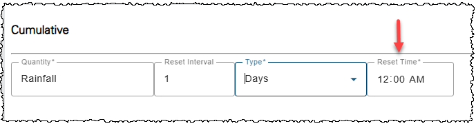 | The Cumulative function in Computed Datasets now has a "Reset Time" parameter when the period Type is days. The "Reset Time" determines when the cumulative calculation resets to a zero value.