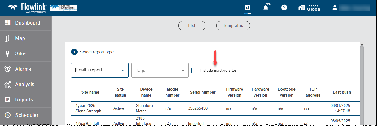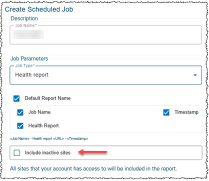 | The Health report in the Scheduler has a new option to include inactive sites. The option is off by default.
