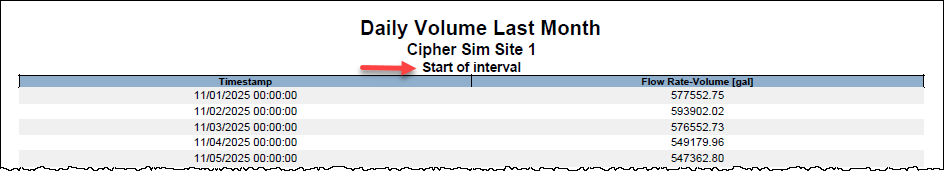| For site statistics reports, the title area of the PDF now includes either 'Start of interval' or 'End of interval', indicating the interval option used to generate the report.