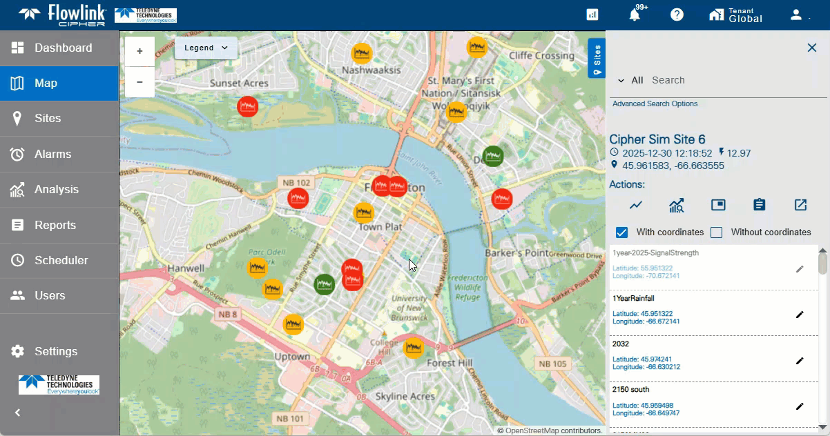 | Double-clicking on a site icon in the Map screen will now automatically jump to that site in the Sites panel, in addition to zooming to the selected site on the map as in previous releases.