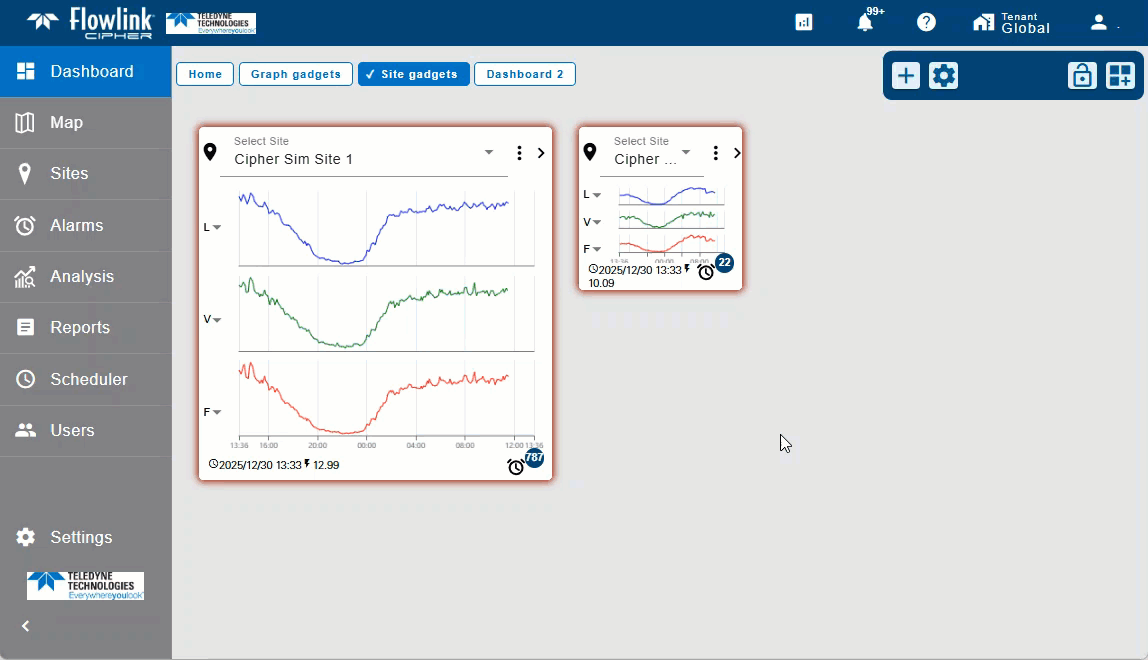 | Sorting on the Active and Voltage columns is now working on the Alarms and Silent Site gadgets. |